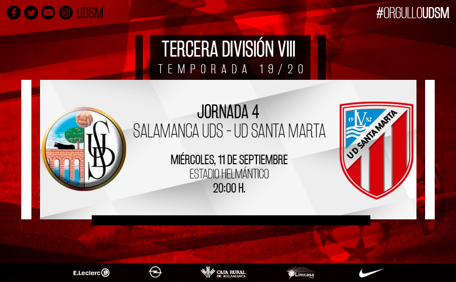 El Santa Marta afronta este miércoles (20:00 horas) en el estadio Helmántico la cuarta jornada de la competición en el Grupo VIII de Tercera División, en el duelo más atractivo de en la categoría. El Salamanca B y el Santa Marta son los dos únicos equipos que cuentan sus partidos con victoria y por ello los aficionados podrán disfrutar de un duelo único.